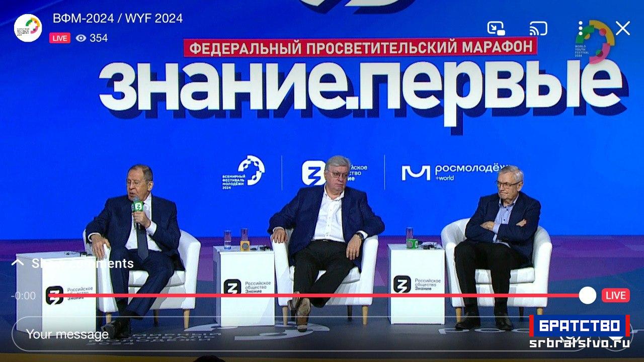На другој дискусији “Русија и њена улога у формирању мултиполарног света” говорио је подједнако значајан говорник – Сергеј Викторович Лавров министар спољних послова Руске Федерације. Лавров је у широком захвату анализирао дугогодишње међусобне односе великих сила и њихове односе са другим државама. Указао је на то да мултиполарни свет већ постоји и да већина проблема у међународним односима настаје због немогућности великих сила да се помире са том чињеницом. Такође, аргументовано је навео решења за тај проблем.