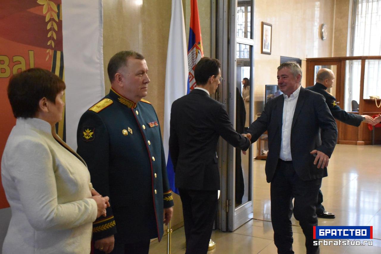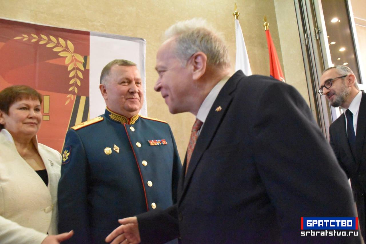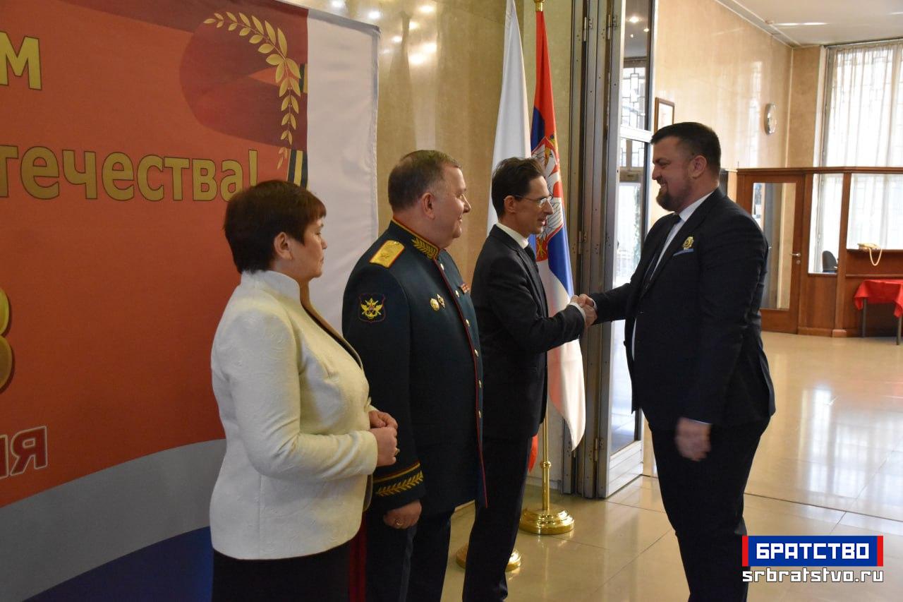 У Амбасади Русије у Београду приређен је свечани пријем поводом Дана браниоца отаџбине, државног празника који Русија традиционално прославља 23. фебруара. Ове године, обележавање има посебан значај јер се навршава 80 година од победе над фашизмом у Другом светском рату. Као што је обичај, домаћини пријема су били заједно амбасадор Александар Боцан-Харченко и изасланик одбране генерал-мајор Генадиј Можајев.