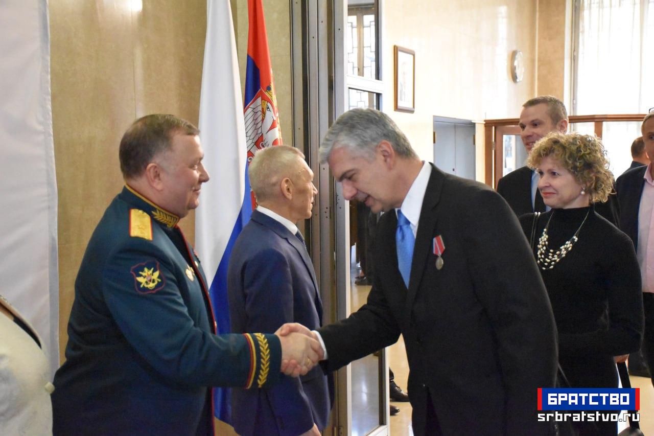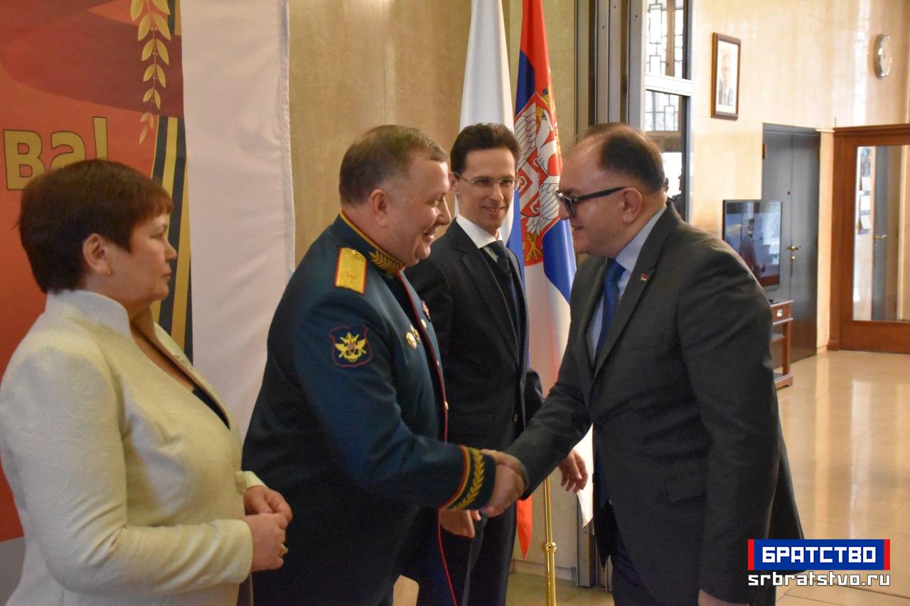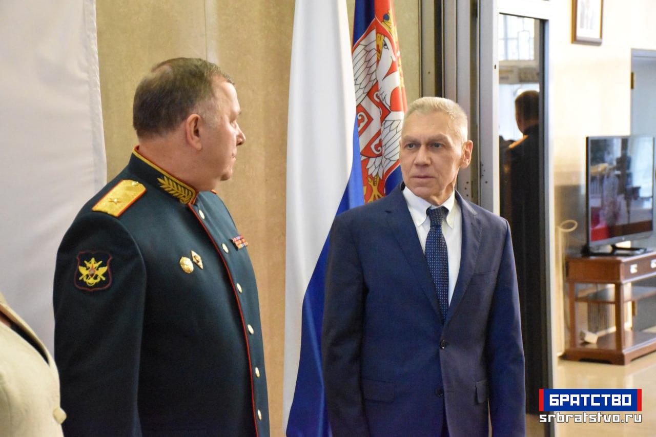 У Амбасади Русије у Београду приређен је свечани пријем поводом Дана браниоца отаџбине, државног празника који Русија традиционално прославља 23. фебруара. Ове године, обележавање има посебан значај јер се навршава 80 година од победе над фашизмом у Другом светском рату. Као што је обичај, домаћини пријема су били заједно амбасадор Александар Боцан-Харченко и изасланик одбране генерал-мајор Генадиј Можајев.
