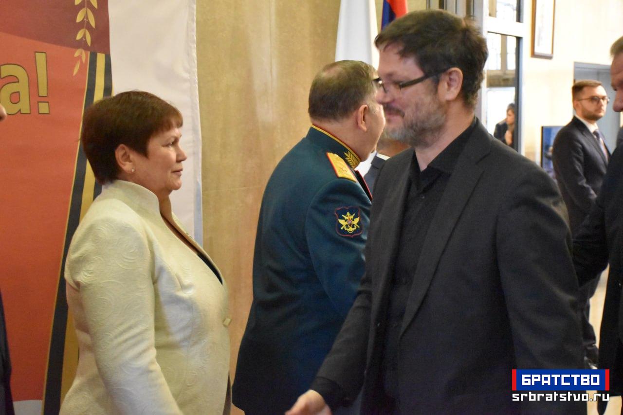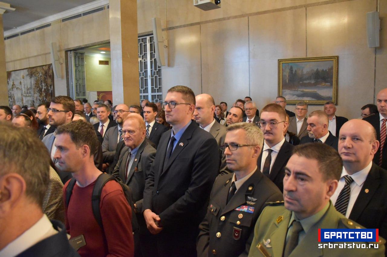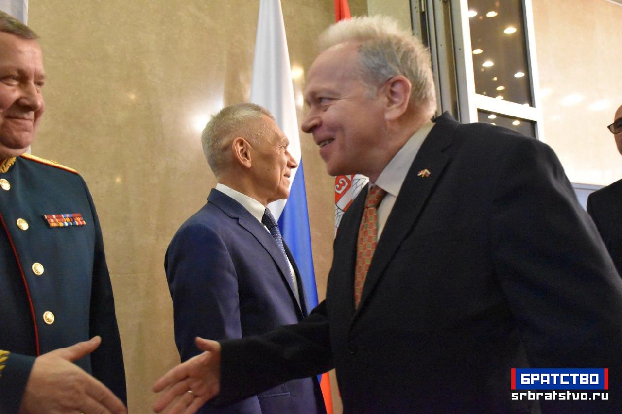 „На крају желим да честитам припадницима Војске Руске Федерације, пре свега је ово њихов празник, а они бране суверенитет, национални интерес и безбедност руске федерације, наше државе, и пре свега онима који се налазе на терену специјалне војне операције – њима, војницима и цивилима, а исто тако и радницима који су радили и сада раде у три-четири смене, да војници увек добију све што је неопходно.“ У реалности днашњег света, закључио је амбасадор, „ако се назире нешто охрабрујуће, нешто позитивно, то је пре свега захваљујући храбрости и напорима руских војника и људи Донбаса. Њима још једном хвала и хвала вама што сте дошли у таквом броју и на таквом нивоу.“