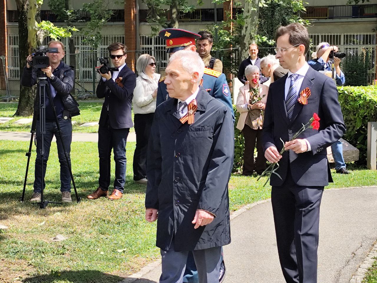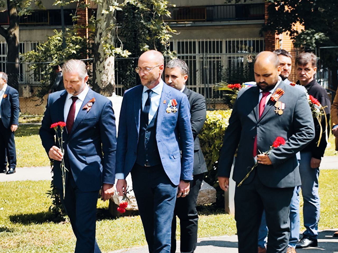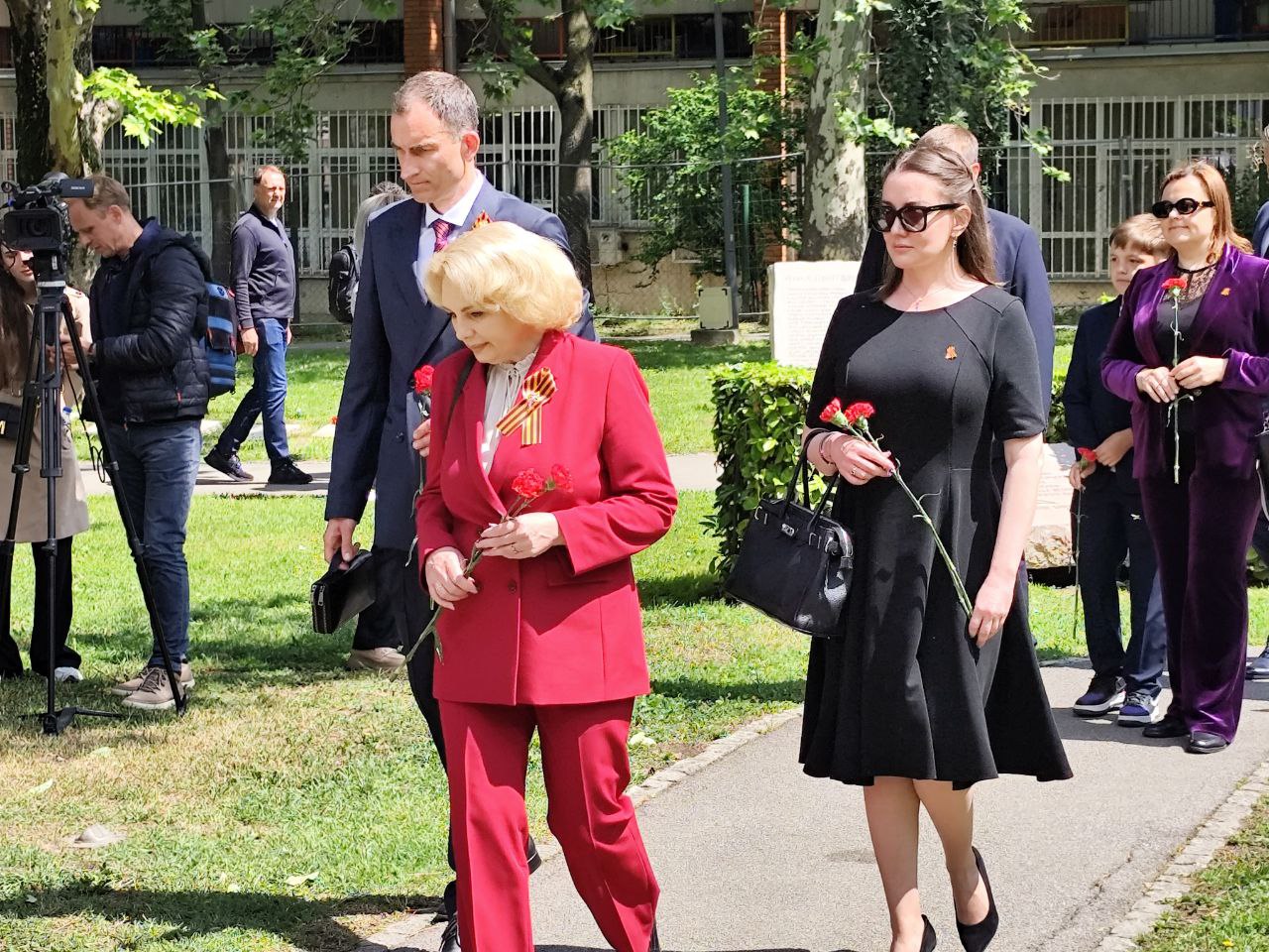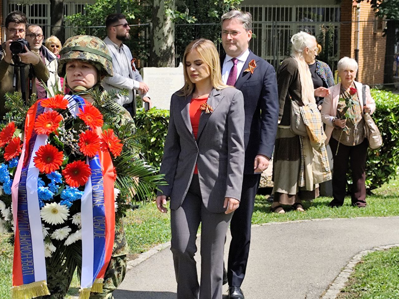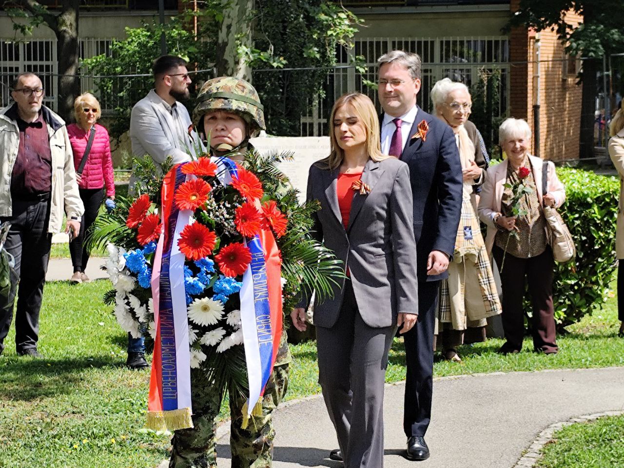 Венце су положили председник Народне скупштине Србије Ана Брнабић, министар за рад, запошљавање, борачка и социјална питања Милица Ђурђевић Стаменковски, министар културе Никола Селаковић и амбасадор Руске Федерације у Београду Александар Боцан-Харченко. Tакође, почаст су одали и највиши официри Војске Србије, амбасадор Белорусије у Србији Сергеј Малиновски, као и дипломатски представници бивших совјетских република.