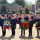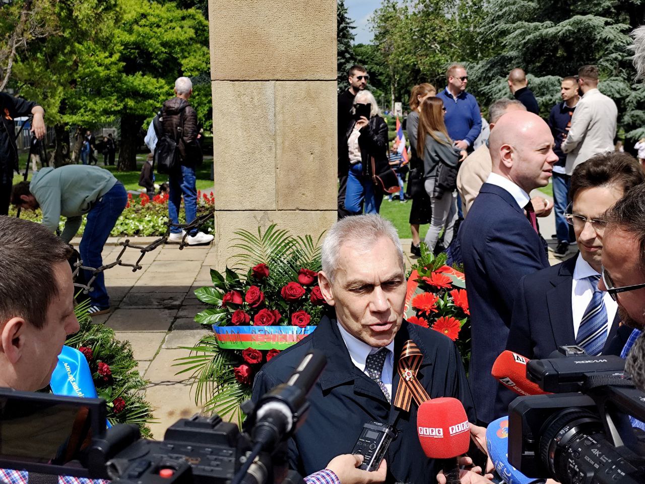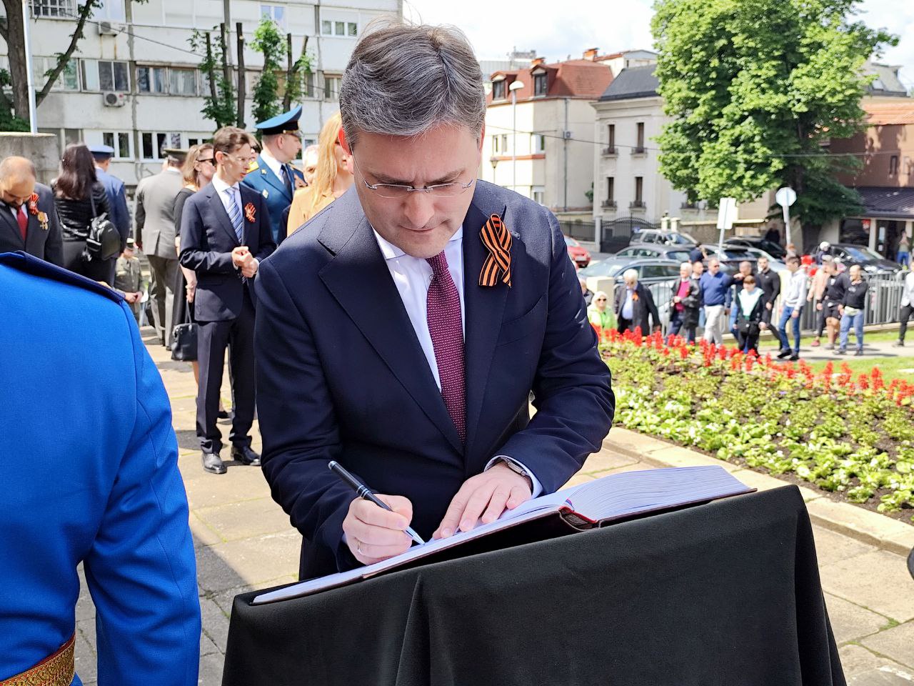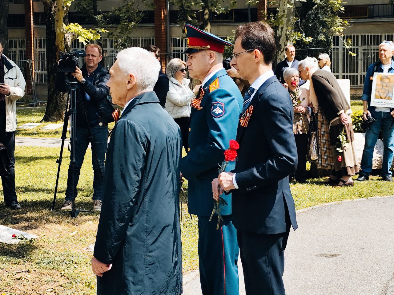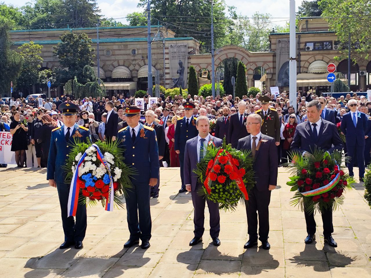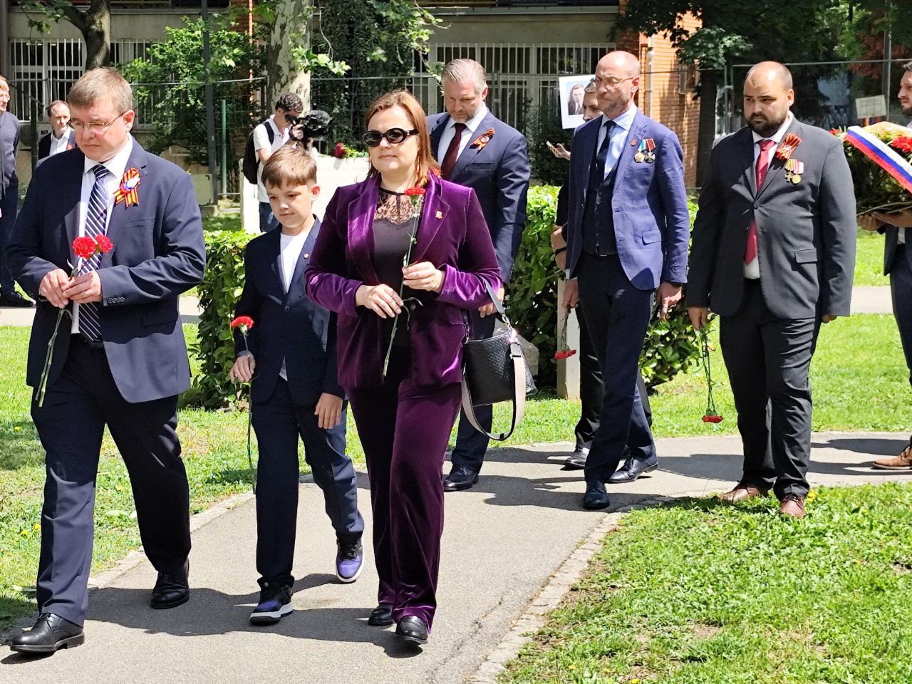 Венце су положили председник Народне скупштине Србије Ана Брнабић, министар за рад, запошљавање, борачка и социјална питања Милица Ђурђевић Стаменковски, министар културе Никола Селаковић и амбасадор Руске Федерације у Београду Александар Боцан-Харченко. Tакође, почаст су одали и највиши официри Војске Србије, амбасадор Белорусије у Србији Сергеј Малиновски, као и дипломатски представници бивших совјетских република.
