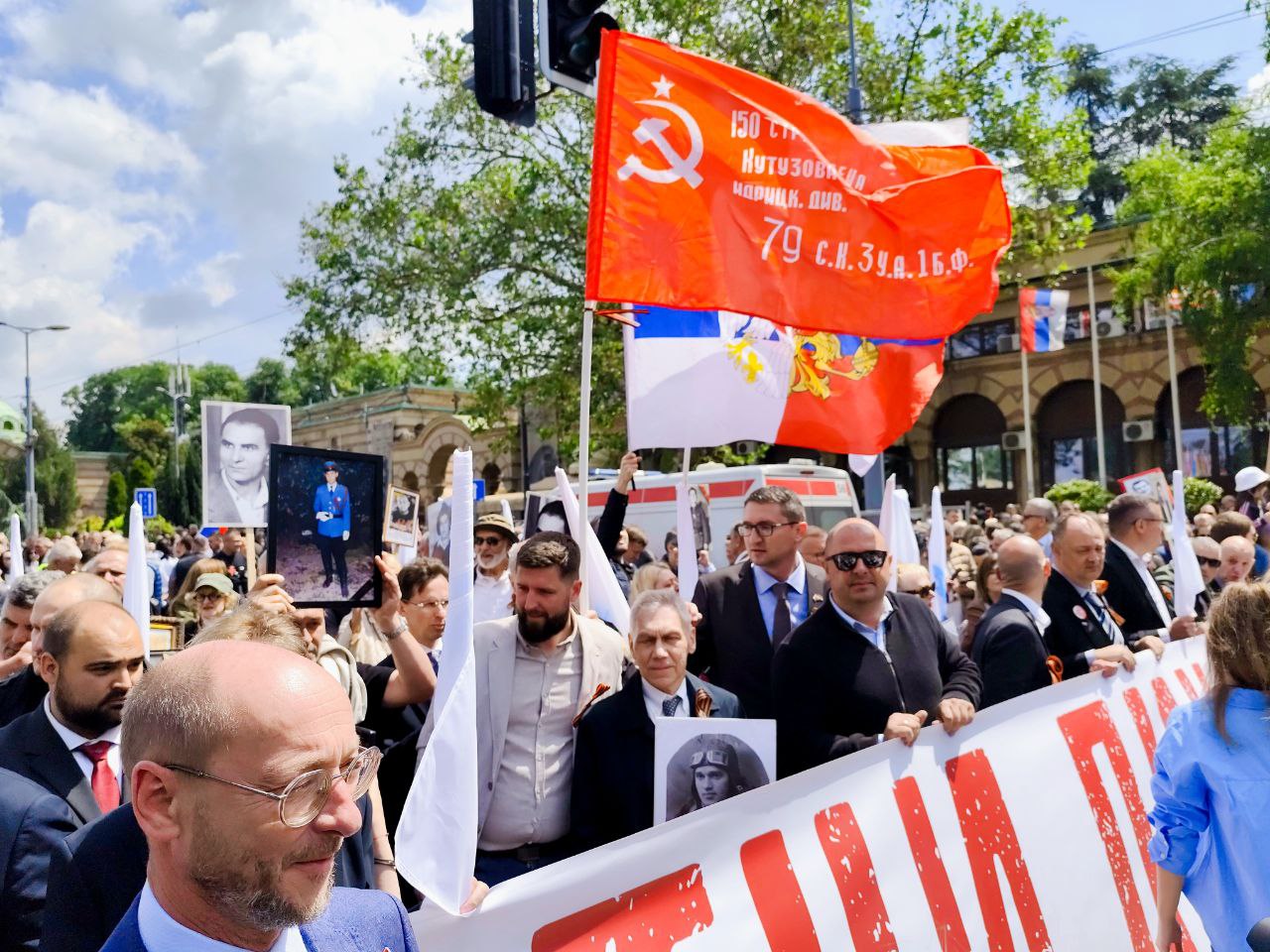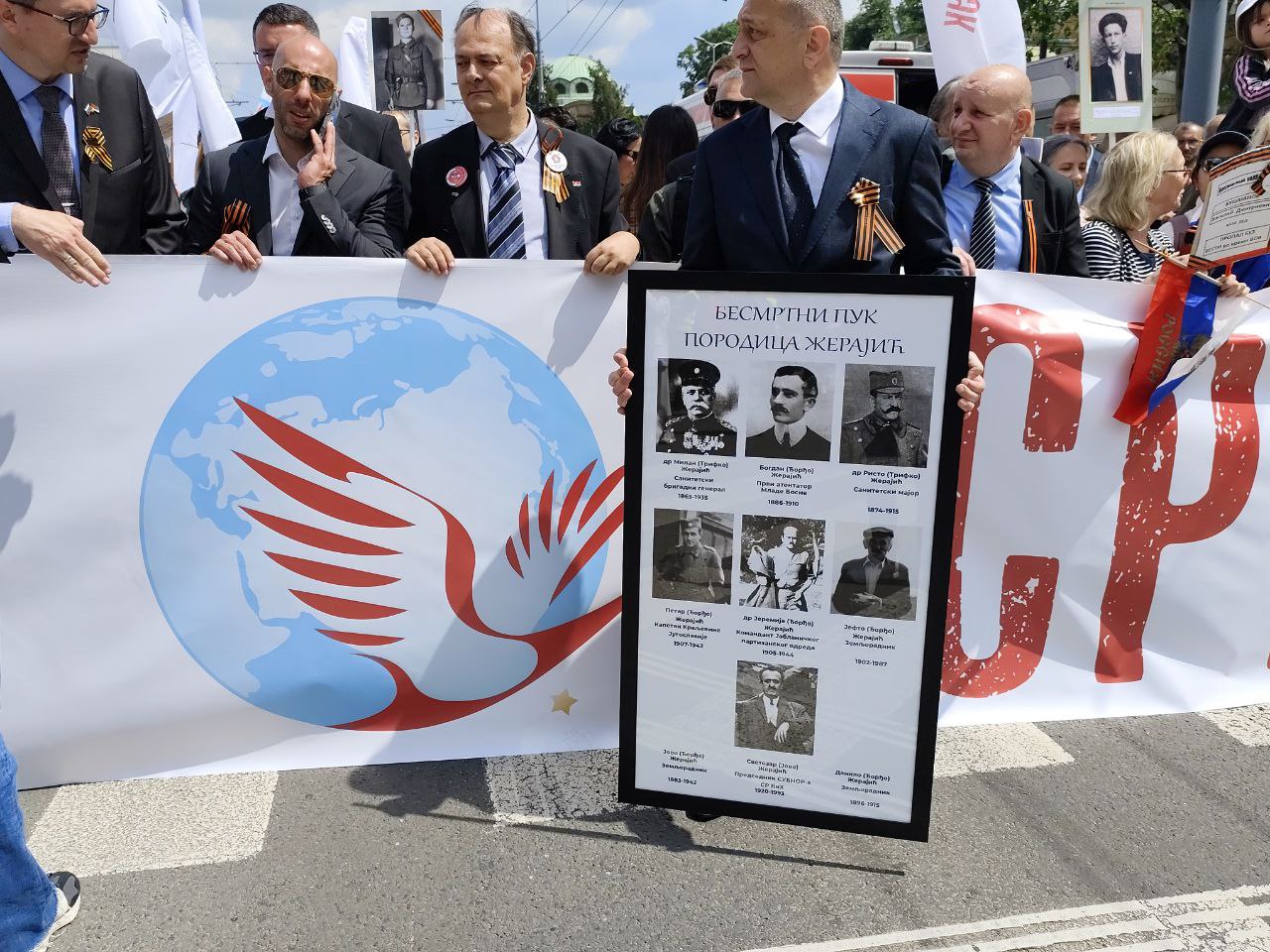 Марш „Бесмртног пука“ предводили су министар Никола Селаковић и амбасадор Александар Боцан-Харченко. Учесници су носили фотографије својих предака који су се борили у Другом светском рату, а током марша пуштане су родољубиве песме.
