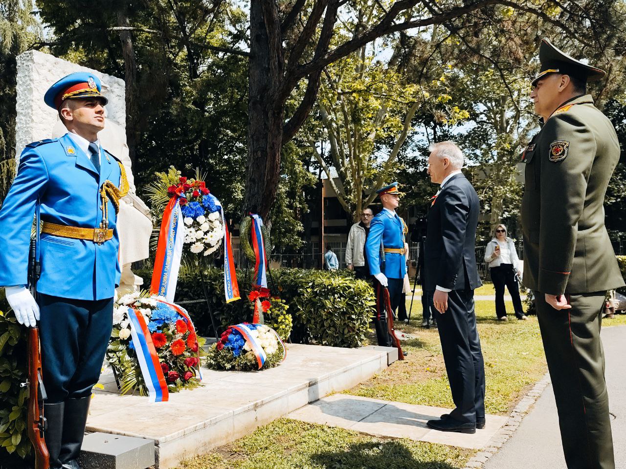 Поводом обележавања 80. годишњице победе над фашизмом у Другом светском рату, данас су најпре положени венци на Споменик совјетским ратним ветеранима на Авали, а затим је у Спомен комплексу “Гробље ослободилаца Београда” одржана свечаност на којој су положени венци и цвеће у знак сећања на пале борце.