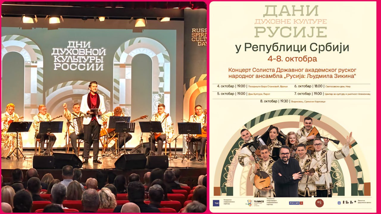 Концертом у Врању отворена је манифестација Дани духовне културе Русије у Републици Србији, која се одржава у више српских градова у периоду од 4. до 8. октобра 2025. године. Следећи концерт солиста ансамбла „Русија: Људмила Зикина“ је најављен за 6. октобар у Нишу.