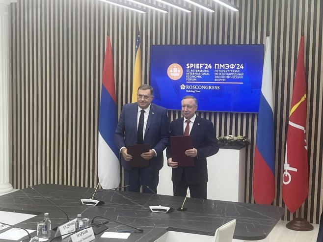 Овом приликом, Додик и Беглов потписали су Записник преговора и Плана манифестација за спровођење листе приоритетних праваца сарадње између Владе Санкт Петербурга и Републике Српске за 2024-2026. годину.