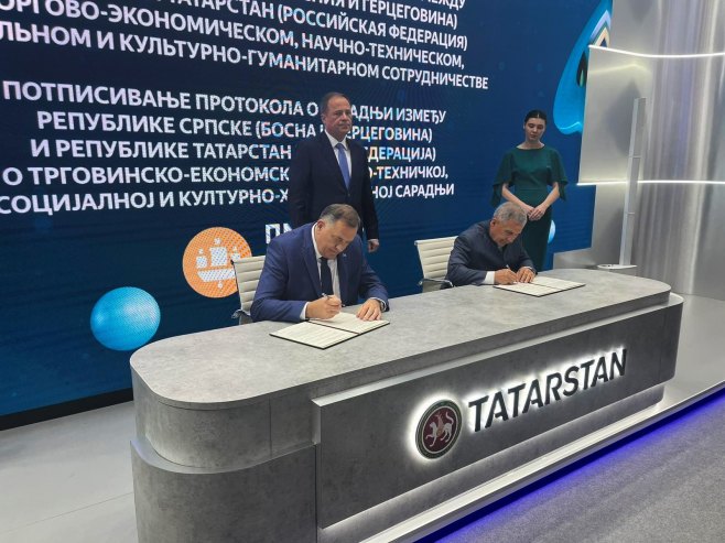 Додик и Миниханов су потписали протокол о сарадњи Републике Српске и Републике Татасрстан о трговинско-економској, научно-техничкој и културно-хуманитарној сарадњи.