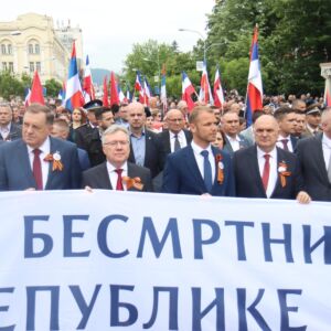 У маршу су и министри у Влади Републике Српске, амбасадор Русије у БиХ Игор Калабухов, представници Српске на нивоу БиХ, посланици у Народној скупштини Српске, градоначелник Бањалуке Драшко Станивуковић, те генерални конзул Србије у Бањалуци Милош Вујић.