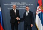 У пријатељском и отвореном разговору заједнички је потврђено да односе Србије и Русије карактерише традиционално пријатељство, културна, историјска, језичка и верска блискост наших народа, као и међусобно поштовање, разумевање и подршка.
