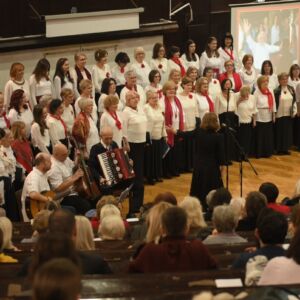 Свечани концерт поводом прославе јубилеја 50 година постојања и активног рада хора Одсека за славистику Филолошког факултета Универзитета у Београду, одржан је синоћ у препуном највећем амфитеатру овог факултета.