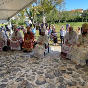 На крају Свете Литургије обављено је освећење хљеба, вина и жита на спомен хумци која се налази на подручју некадашњег логора смрти Јасеновац, где су у Другом светском рату усташе убиле много хиљада Срба.