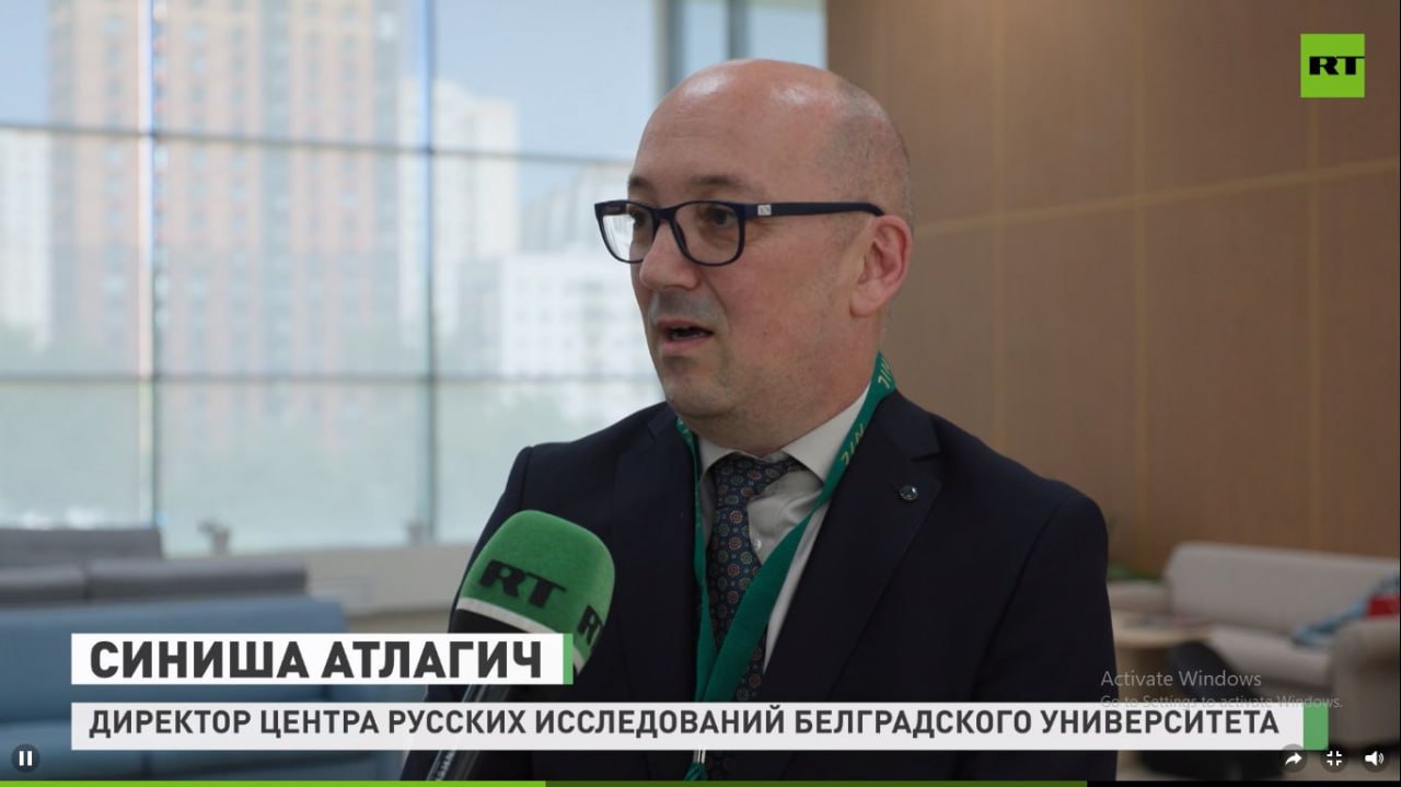 Директор Центра за руске студије Универзитета у Београду Синиша Атлагић сматра да је директна линија између Русије и Србије, упркос санкцијама, велико достигнуће и знак слободе. Синиша Атлагић сматра веома важном размену мишљења која је одржана на конференцији. Све што је речено о новом мултиполарном поретку у свету намерава да пренесе колегама у Србији.