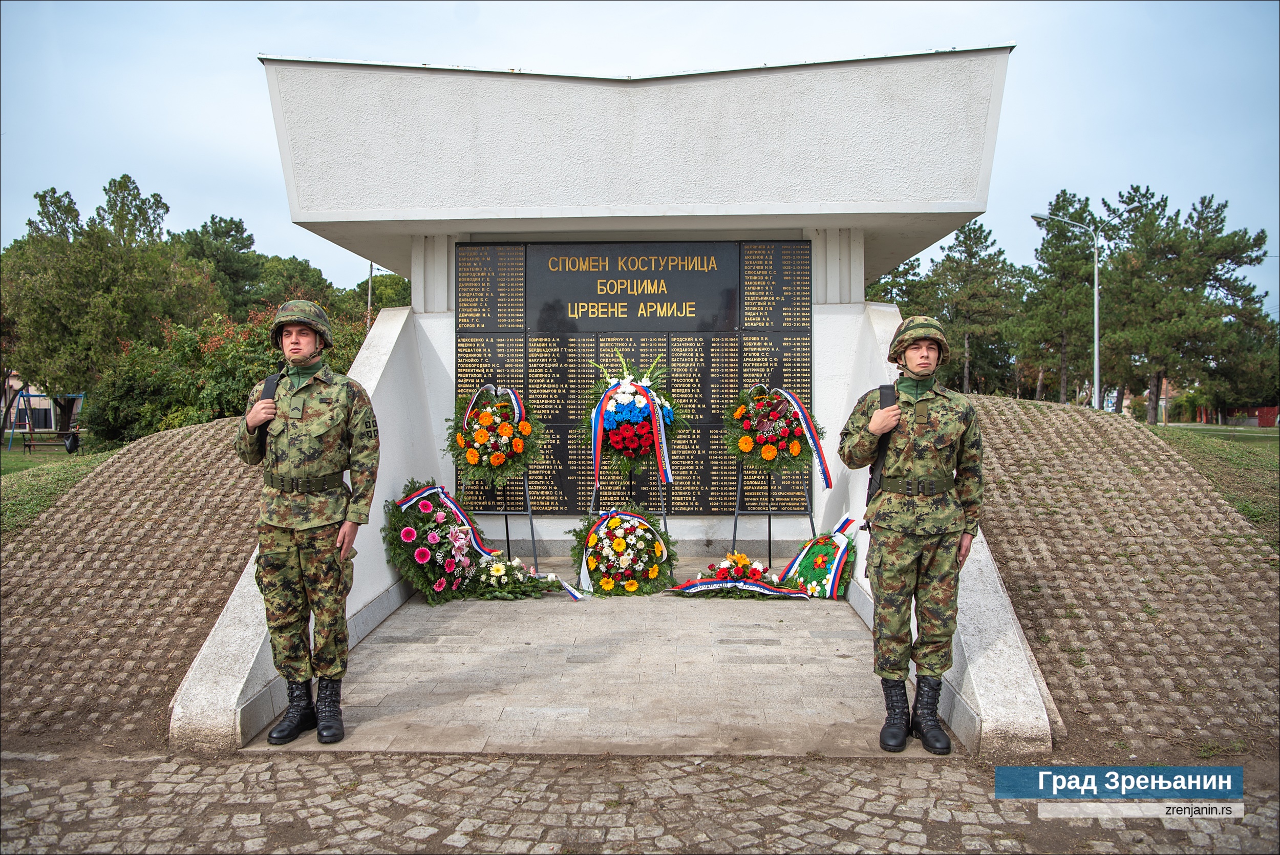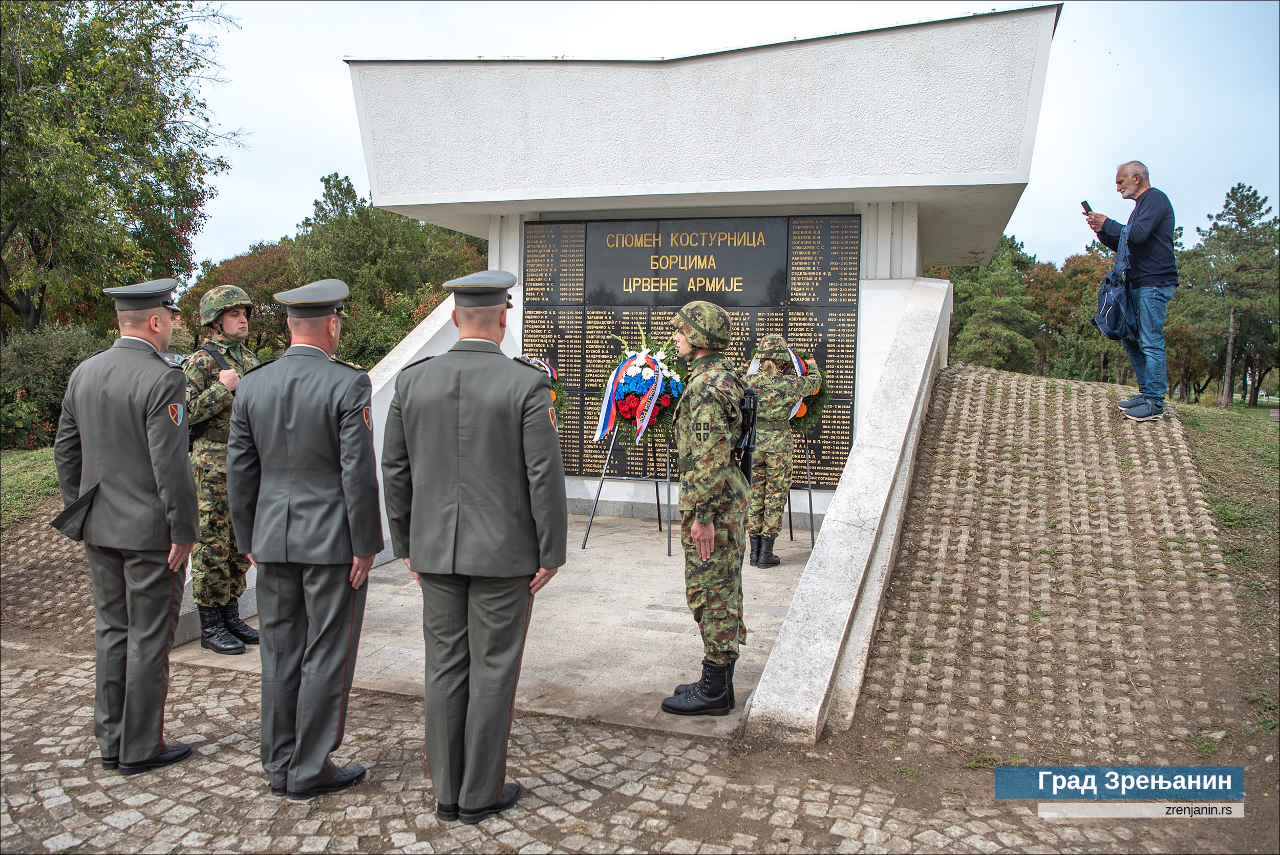 У име Града Зрењанина, венац на спомен-костурницу бораца Црвене армије, погинулих у борбама за ослобођење града и околине, као и на споменик народном хероју Соњи Маринковић и стрељаним родољубима у спомен-парку на Багљашу, положили су заменик заменик председника Скупштине града Зрењанина Оливер Митровић и помоћници градоначелника Снежана Вучуревић, Марија Дамјановић и Ненад Домјесков. Уз секретара амбасаде Руске Федерације, у церемонији су узеле учешће и делегације Команде гарнизона ВС у Зрењанину, градских одбора СУБНОР Зрењанин и Кикинда, руске компаније “Леваре сервис Србија” и месних заједница са територије насеља Багљаш – “Соња Маринковић” и “Вељко Влаховић”.