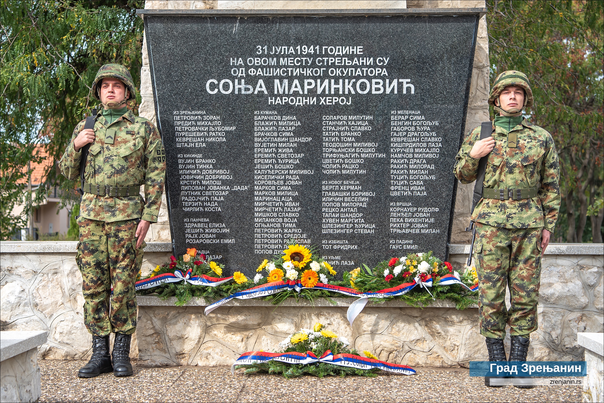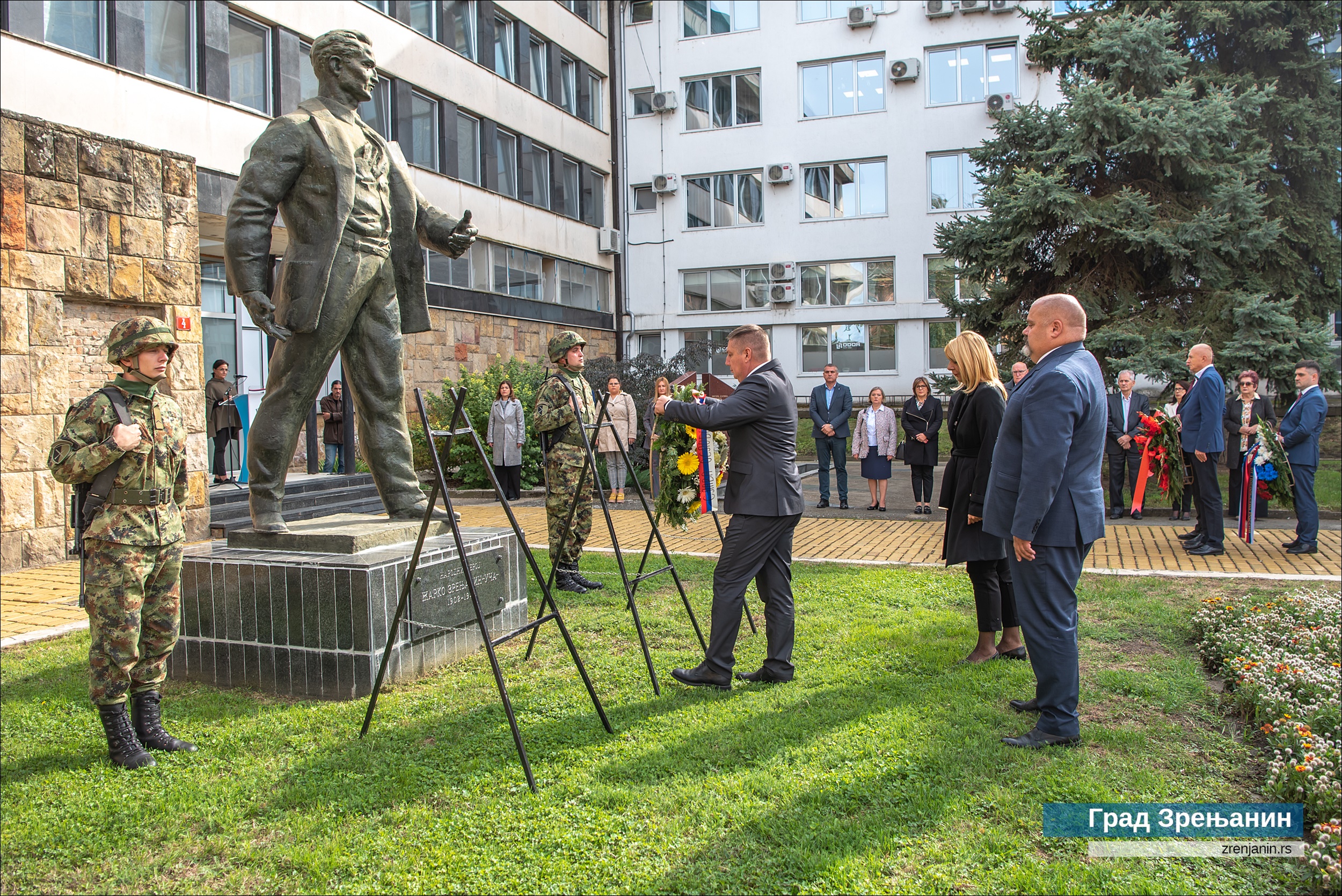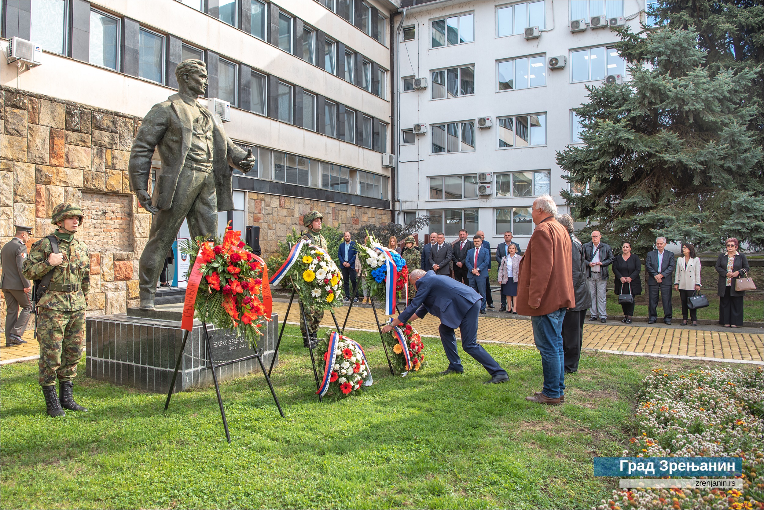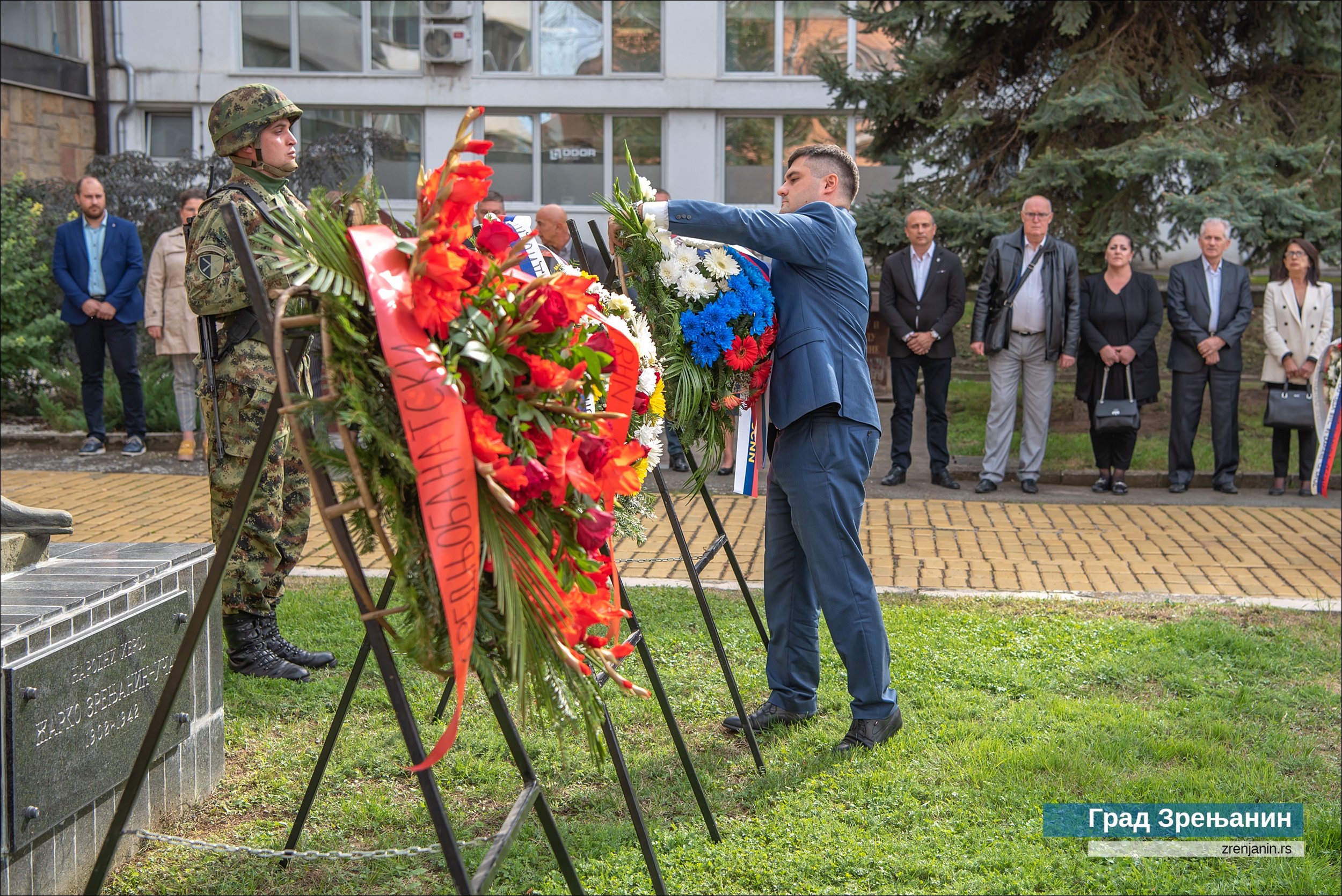 На споменик народном хероју Жарку Зрењанину венце су положили представници Града Зрењанина – заменик градоначелника Саша Сантовац, председник Скупштине града Чедомир Јањић и помоћница градоначелника Снежана Вучуревић, секретар амбасаде РФ Литвинов, делегације Средњобанатског округа, Команде гарнизона ВС у Зрењанину, градских одбора СУБНОР Зрењанин и Кикинда, Јеврејске општине Зрењанин, компаније “Леваре сервис Србија” и Градског одбора СНС Зрењанин.