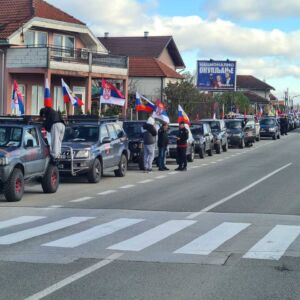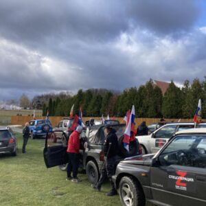 Колона теренских возила („4х4“) испуњена борбеним православним Србима и окићена српским и руским заставама показала је љубав, братство и солидарност према мајци Русији која бије одлучујућу битку за спас људског рода и за нови, праведнији свет.