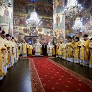 У сугобој јектенији узнијете су посебне молитве, а поглавар Руске православне цркве прочитао је молитву за Свету Рус(Русију, Украјину и Бјелорусију) .