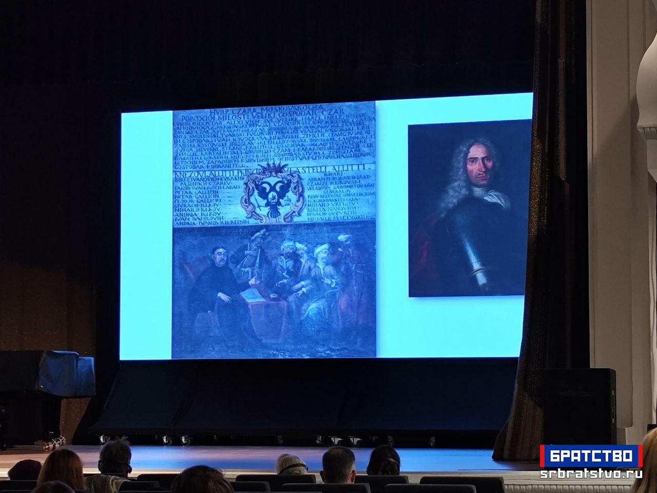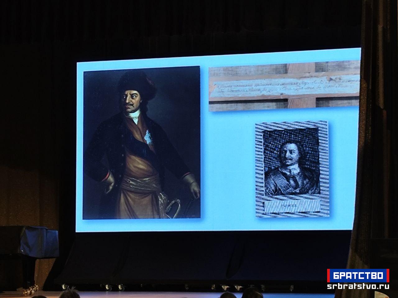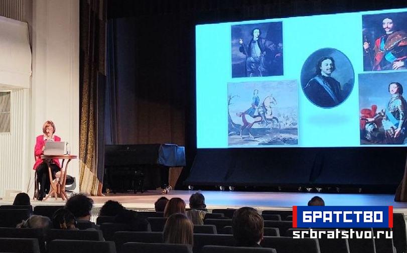 У наставку предавања Бахарева је говорила о визуелним и симболичким елементима који прате изложбу: слике и портрети Петра Великог, указавши на значај једног његовог портрета који се налази у манастиру Велика Ремета на Фрушкој гори и који, по њеним речима, представља не само уметнички предмет него и симбол руско-српских веза.