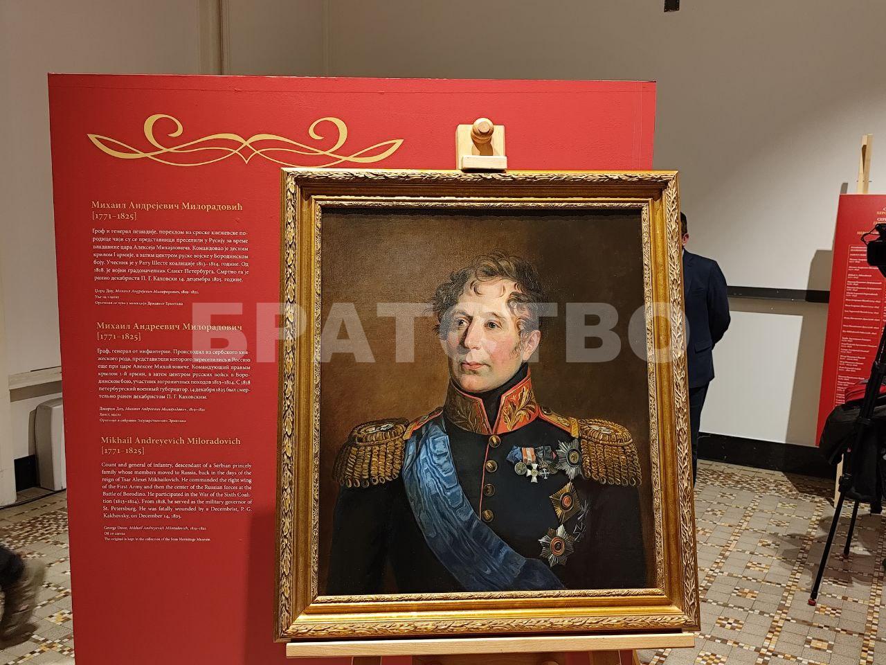 У Народном музеју Србије отворена је изложба „Портрети руских војсковођа српског порекла“, која представља девет портрета знаменитих личности чије су биографије дубоко испреплетане са историјом Русије и Србије. Поставка открива изузетне судбине Срба који су у служби Руске империје стекли највише војне и државне положаје, доприносећи одбрани и обликовању руске државности, а истовремено неговали и поносно истицали своје порекло.