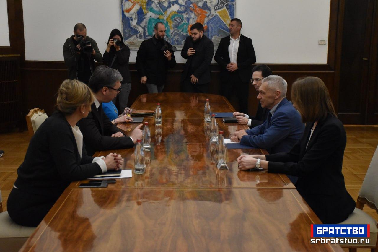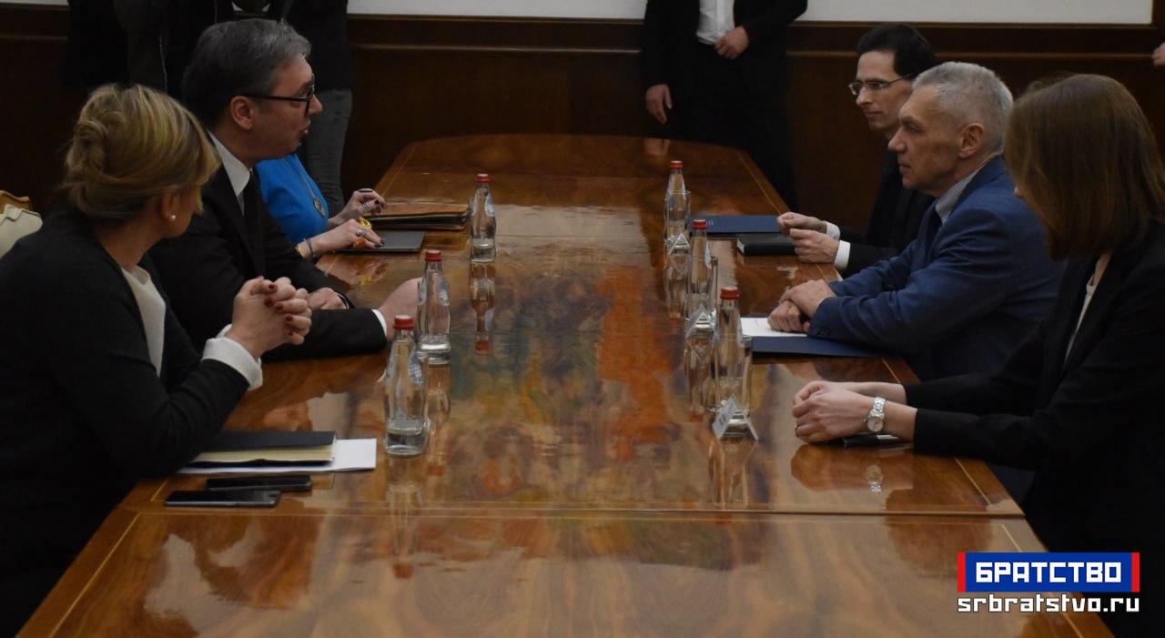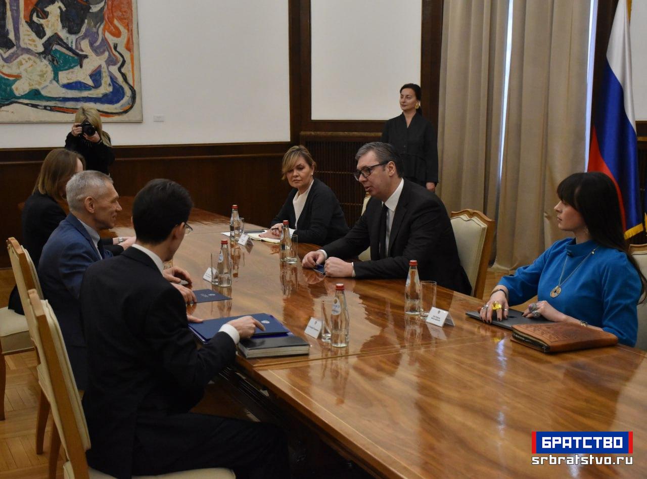 Председник Републике Србије Александар Вучић примио је амбасадора Руске Федерације Александра Боцан-Харченка, који му је уручио честитку председника Владимира Путина поводом Дана државности.