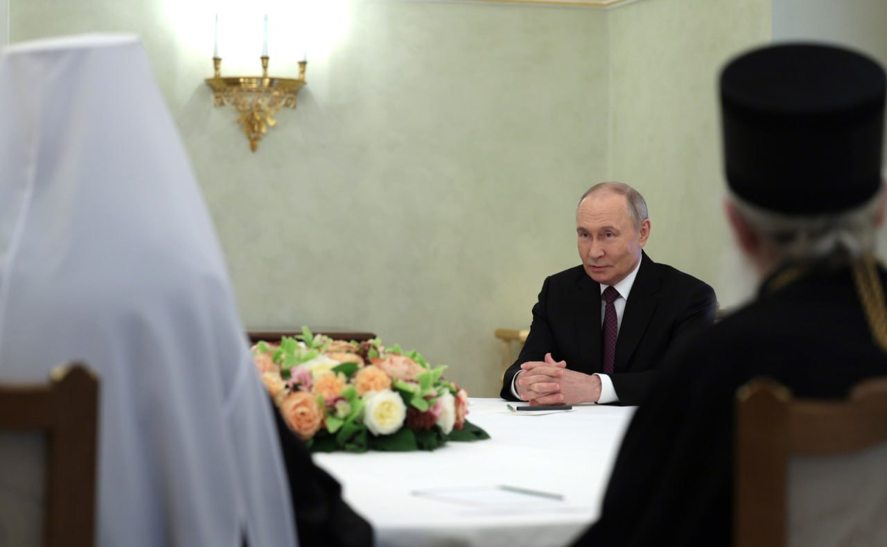 Владимир Путин: Ваша Светости, поменули сте шта се дешава западно од нас. Сви добро знамо, сви смо видели, били смо сведоци вашег сусрета са римским папом, који нас је напустио ових ускршњих дана. То, чини ми се, говори и о томе да на Западу још увек постоје људи, постоје снаге, и духовне снаге, које теже да обнове односе и да оживе духовна начела.