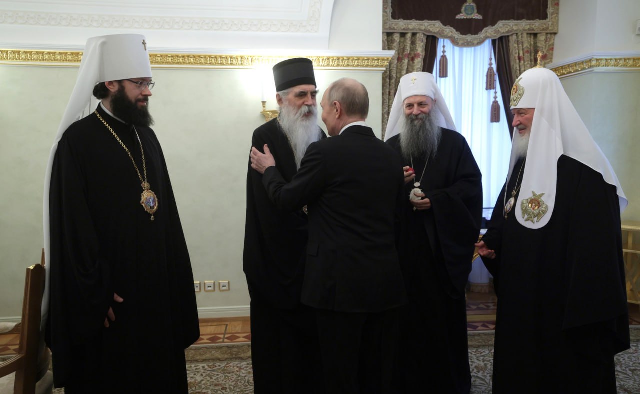 Патријарх Порфирије: Господине председниче, извините, рећи ћу неколико речи – не говорим добро руски, али све разумем. Са мном је и владика Иринеј, који одлично говори руски.