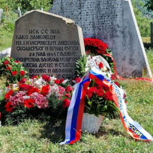 Након литургије положени су венци на споменике страдалим у трагедији.