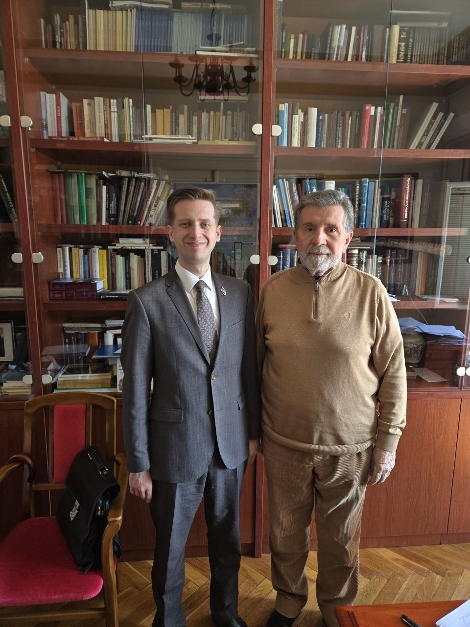 Након разговора са Вулином, Черњиговски се састао и са академиком проф. др Славком Терзићем, цењеним историчарем и једним од оснивача Руског историјског друштва у Србији. Саговорници су разговарали о унапређењу научне сарадње између институција Србије и Русије, размени истраживачких програма, заједничким пројектима и издавачкој делатности.
