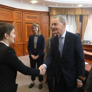 О’Саливен је разменио мишљење са председницом Владе о конкретним корацима које треба реализовати са трећим земљама како би се спречило заобилажење санкција и захвалио на отвореном и конструктивном ставу и спремности за даљу сарадњу.
