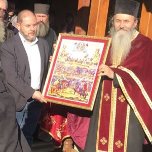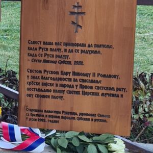 У присуству бројног верног народа и представника амбасаде Русије и Руског дома, јуче је у манастиру Рукумија откривено и освештано спомен обележје захвалности (спомен плоча, икона и крст) Светом страстотерпцу Руском Цару Николају II Романову.