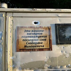 «Као што је овде на таблици написано, ми смо, нажалост, били проба онога се догодило са Русијом и што се сада догађа у Украјини. Југословенски ратови су то исто, само је у Украјини – убрзана варијанта.