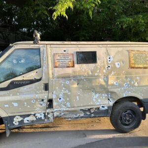 Споменик Слободану Милошевићу је привремено постављен испред централног улаза у Бајк центар, поред великог православног крста и блиндираног аутомобила Ноћних вукова, изрешетаног на ратишту.