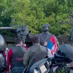Све време скулптуру је пратила колона руских бајкера.