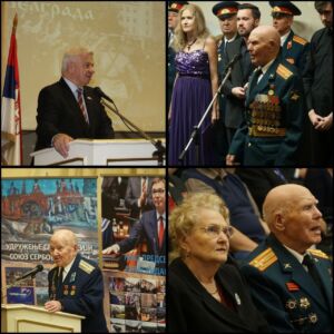 У официјелном делу програма говорили су и представници руководства Московског савета ветерана, чланови ветеранске Комисије за међународну и међурегионалну сарадњу, као и друштвене организације Државни сабор човечанства. Међу говорницима био је и један од учесника у завршној операцији за ослобођење Београда 1944, који је поделио са присутнима сећања на тешке, али славне дане наше заједничке историје, уз искрено изражене симпатије према Србији и братском српском народу.