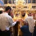 Прослава је настављена обредом благосиљања и сечења славског колача, који је распрострањен у балканским земљама, када верник доноси хлеб и вино, као и кољиво, да се благослове и поделе као благослов свим присутнима у част дана светитеља или празника који се слави.