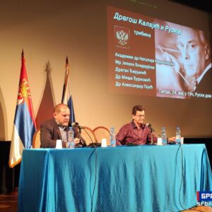 У препуној великој сали „Фјодор Шаљапин“ Руског дома у Београду, одржана је 24. маја трибина „Драгош Калајић и Русија“, уприличена на Дан словенске писмености и културе. На трибини су учествовали академик др Наталија Нарочњицка, др Јелена Бондарјева, Драган Ћирјанић, др Миша Ђурковић и др Александар Гајић.