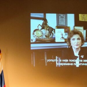 Потом су се у екслузивном видео укључењу из Москве присутнима обратиле академик др Наталија Нарочњицка и Јелена Бондарјева, које су се кроз сећања осврнуле на тешка времена у тадашњој СР Југославији и Русији и на Калајићеву улогу, али и на његова упозорења и предсказања о намерама Запада. Калајић је опомињао руске пријатеље да се оно што је Запад чинио Србима тада, заправо спрема Русији у будућности.