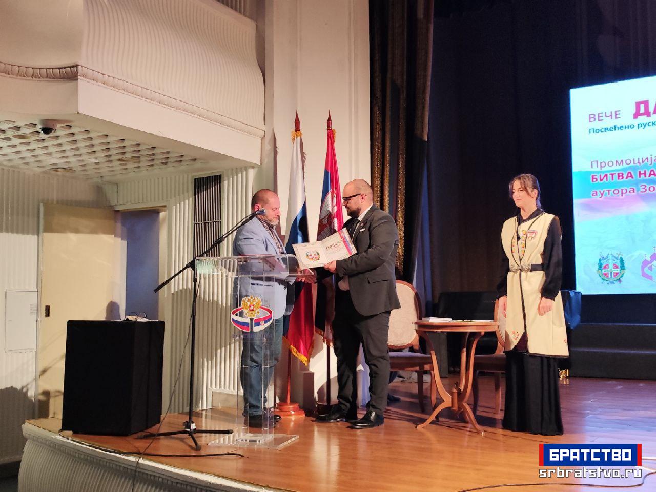Пре уметничког програма, Никола Филиповић уручио је повеље и признања представницима пријатељских удружења за подршку и сарадњу, а једно од признања припало је Руском дому у Београду.