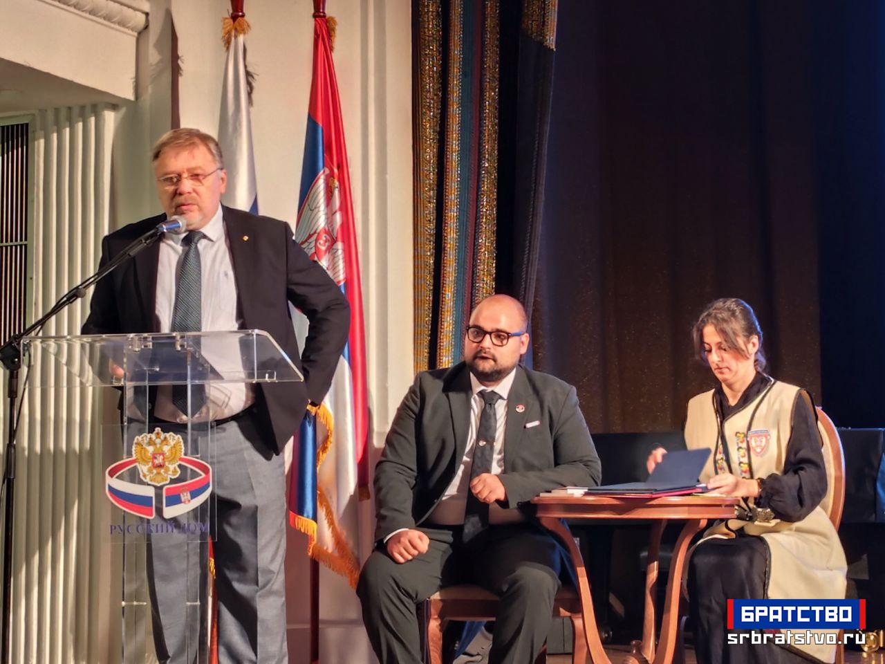 Присутнима се обратио и Александар Конањихин, министар саветник у Амбасади Руске Федерације, који је истакао значај братске сарадње у очувању заједничког културног и духовног наслеђа. Посебно је нагласио значај недавне обнове руског гробља белих емиграната у Белој Цркви, као симбола заједничког сећања и поштовања према генерацијама које су Србију изабрале за своју другу отаџбину.